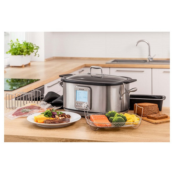 | سایر توضیحات | 8 برنامه خودکار حداکثر راحتی را تضمین می کند ،گزینه ای برای تنظیم دما و زمان پخت ،طراحی زیبا از فولاد ضد زنگ مناسب برای هر آشپزخانه، ظرفیت 7 لیتری برای کل خانواده بیش از حد کافی است ،لایه ای با تکنولوژی برای جلوگیری از چسبیدن غذا ،دیوار قابلمه از آلیاژ آلومینیوم به ضخامت 2.5 میلی متر ،قابل قرار دادن در یخچال ، قابل شستشو در ماشین ظرفشویی،مناسب برای : تفت دادن، اسلو کوک ، ماست ، برنج ، بخار ، گرم نگهدار ، سو وید ، خورشت .گزینه ای برای تنظیم دما و زمان پخت و پز ،تنظیم و فراموش کردن تایمر با اطمینان از حداکثر راحتی پخت به شما امکان می دهد دما و زمان پخت را تنظیم کنید ،پانل کنترل LCD دیجیتال راحت ترین تجربه پخت را فراهم می کند و کنترل را حتی با دست خیس امکان پذیر می کند .عملکرد گرم نگه داشتن به طور خودکار دمای ایده آل را حفظ می کند. غذای شما پس از اتمام فرآیند پخت ،قابلمه بخارپز بزرگ از جنس استنلس استیل برای پخت ماهی، پیراشکی و سبزیجات در بخارپز ، قابلمه بخارپز از فولاد ضد زنگ درجه یک ساخته شده است که طول عمر طولانی و مقاومت در برابر خوردگی را تضمین می کند .دسته مقاوم در برابر حرارت از هرگونه سوختگی جلوگیری می کند و امکان جابجایی غذا را فراهم می کند. اجاق گاز داغ در حین پخت و پز بدون نیاز به استفاده از دستکش فر ، درب ساخته شده از شیشه سخت شده طول عمر طولانی را تضمین می کند ، درب کاملاً مهر و موم شده به حفظ دمای ثابت کمک می کند ، قفسه آشپزی Sous-vide برای پخت و پز یکنواخت ، سینی پخت سیلیکونی ، دستکش فر مقاوم در برابر حرارت عملی ، طراحی ظریف استیل ضد زنگ مناسب برای هر آشپزخانه ،عالی برای پخت سوپ، گولش ، مربا، گوشت بره، گوشت گاو، سبزیجات، تخم مرغ و غیره پخت آهسته ، یک روش پخت جدید که تمام طعم ها را حفظ می کند ، نیازی به استفاده از روغن ندارد ، باعث صرفه جویی در زمان و هزینه می شود ، امکان پخت در بخار، پخت، سرخ کردن و تهیه گولش عالی را فراهم می کند ، امکان استفاده از قطعات ارزانتر گوشت برای تهیه غذاهای عالی را فراهم میکند ،از هر گونه سوختگی جلوگیری می کند زیرا به دمای پخت بالایی که در آن غذا می سوزد نیاز ندارد ،مصرف آب را کاهش می دهد زیرا غذا در یک قابلمه پخته می شود و 7 دلیل برای پخت و پز در آرام پز :سادگی - به سادگی تمام مواد را داخل قابلمه بریزید و اجازه دهید تمام کارها را انجام دهد. باعث صرفه جویی در مصرف آب و برق می شود – ساخت آلیاژ آلومینیوم ویژه اجاق گاز انتقال حرارت موثرتری را نسبت به دیگ های سرامیکی سنتی برای کاهش مصرف برق امکان پذیر می کند. صرفه جویی در زمان - به سادگی تمام مواد را در اجاق گاز قرار دهید و اجازه دهید تمام پخت و پز انجام شود. ، طعمهای شدید و بدون از دست دادن ویتامین - برخلاف پختهای استاندارد، با پخت آهسته در دمای پایین، طعم و ویتامینها حفظ میشوند. ، گوشت آبدار – هنگام پخت آهسته، آب آن داخل گوشت می ماند ،گزینه ای برای پخت برش های گوشتی سفت - برش های گوشتی سفت به طور سنتی در زمان پخت آهسته عالی هستند ، پخت و پز بدون چربی – به دلیل دمای پایین، روغن مورد نیاز نیست و بنابراین غذاها سبک تر و حتی طعم بهتری دارند.خروجی: 1250 وات |
