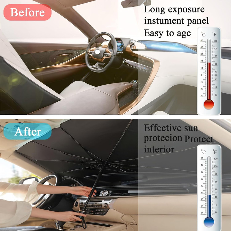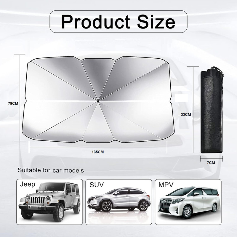 آفتابگیر خودرو سویتو مدل چتری (suitu) لوازم جانبی مناسبی برای خودرو شما است. این محصول از با کیفیت ترین مواد ساخته شده است که در برابر اشعه های خورشید محافظت می کند، که باعث می شود دمای داخل خودرو کمتر شود. طراحی سبک و انعطاف پذیر است که باعث افزایش طول عمر آن در مدت زمان طولانی استفاده می شود. ابعاد این آفتابگیر خودرو سویتو مدل چتری (suitu) برای همه خودرو ها مناسب میباشد و طوری میباشد که محصول کاملاً جا افتاده و وظیفه خود را انجام دهد. آفتابگیر خودرو سویتو مدل چتری (suitu) راه حل مناسبی برای کسانی است که می خواهند از مشکل گرم شدن بیش از حد خودروی خود در صورت ماندن در آفتاب جلوگیری کنند. این محصول بخش زیادی از نور خورشید را منعکس میکند و به لطف لایه تیتانیوم خود، عایق حرارتی را نیز تضمین می کند. آفتابگیر خودرو سویتو مدل چتری (suitu) به طور موثری اشعه ماوراء بنفش را مسدود می کند و از داخل وسیله نقلیه شما محافظت می کند. به لطف استفاده از دی اکسید تیتانیوم، چتر به طور موثری اشعه های مضر خورشید را منعکس می کند. علاوه بر این، روکش ویژه به شما اجازه می دهد تا دمای داخل خودرو را تا 30 درجه سانتی گراد کاهش دهید، به طور موثر انتقال گرما را کاهش داده و شرایط خنک دلپذیری را فراهم می کند. استفاده از آفتابگیر خودرو سویتو مدل چتری (suitu) بسیار آسان است - محصول مانند یک چتر معمولی باز می شود. بنابراین می توانید به راحتی و به سرعت از فضای داخلی خودرو خود در برابر گرمای بیش از حد محافظت کنید. مواد استفاده شده برای ساخت این محصول سازگار با محیط زیست، غیر سمی و بدون بو است. این چتر که از پلاستیک PET ساخته شده است، در برابر قرار گرفتن طولانی مدت در برابر نور خورشید مقاوم است.