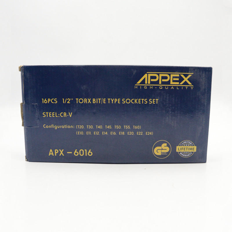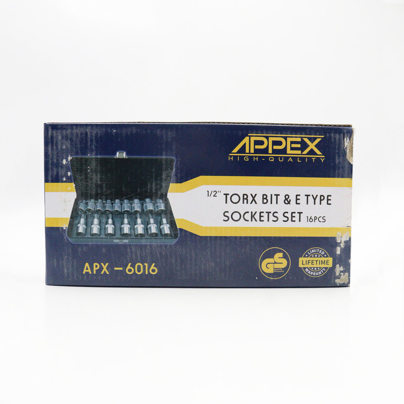 سایر توضیحات- آلن بکی بیت خور اپکس مجموعه 16 عددی - شامل 7 عدد آلن بکس ستاره ای در سایز های : T20 -T30 - T40 - T45 - T50 - T55 - T60 - شامل 9 عدد آلن بیت خور مدل E در سایز های : E10 - E11 - E12 - E14 - E16 - E18 - E20 - E22 - E24 - دارای درایو 1/2 اینچ - کیفیت بالا - دارای جعبه شیک و مقاوم