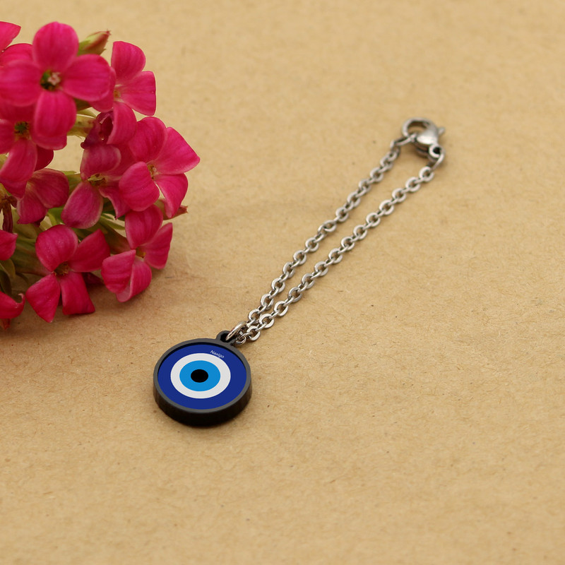 آویز ساعت به عنوان یک اکسسوری جذاب و زیبا برای تمام افراد و تمام سنین به شمار می آید. آویز ساعت ناکسیگو طرح چشم نظر ساخته شده از جنس زنجیر استیل و پلاک اکریلیک است. این محصول به صورت شب تاب بوده و در صورتی که در معرض نور قرار بگیرد در تاریکی نور بسیار زیبا و چشم نوازی از خود منتشر می کند. کاملا ضد حساسیت بوده و رنگ ثابت دارد. طول زنجیر 11 سانتی متر و قطر آویز حدودا 1.5 سانتی متر می باشد. محصول با بسته بندی شیک و مناسب جهت هدیه ارائه می شود. توجه داشته باشید که جهت فعال شدن حالت شب تاب می بایست آویز ساعت را به مدت چند ثانیه زیر نور مستقیم قرار دهید.