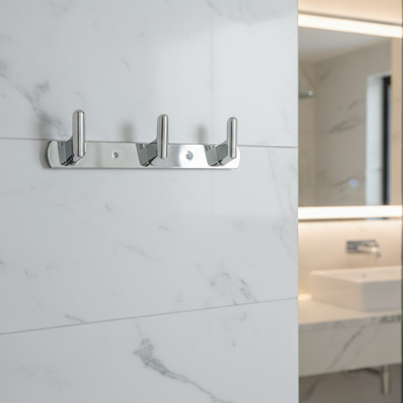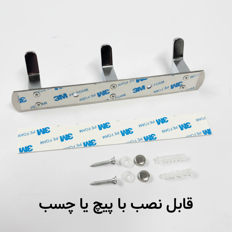 نصب آن بسیار آسان است و می‌توانید به دلخواه خود از چسب دوطرفه‌ی قوی 3M یا پیچ و رول‌پلاک استفاده کنید. طراحی سه شاخه، فضای کافی برای آویزان کردن لباس، حوله یا کیف فراهم می‌کند.