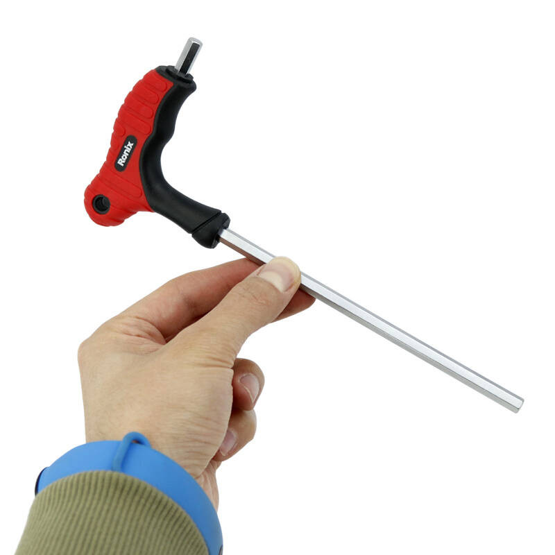 آلن دسته T شش گوش Ronix مدل RH-2011 از فولاد کروم وانادیوم و تحت عملیات حرارتی جهت سختی و طول عمر بالاتر ساخته شده است. دسته این آن دارای روکشی از جنس TPR دو رنگ باکیفیت است که باعث راحتی بیشتر حین کار میشود. دسته این ابزار جهت گیرایی بهتر و همچنین قابلیت آویز برای نگهداری و کاربری مناسب، به صورت ارگونومیک طراحی شده است. همچنین روکش سطحی مات الکتروپلیت، از زنگ زدگی جلوگیری کرده و باعث دوام بالاتر ابزار میشود.