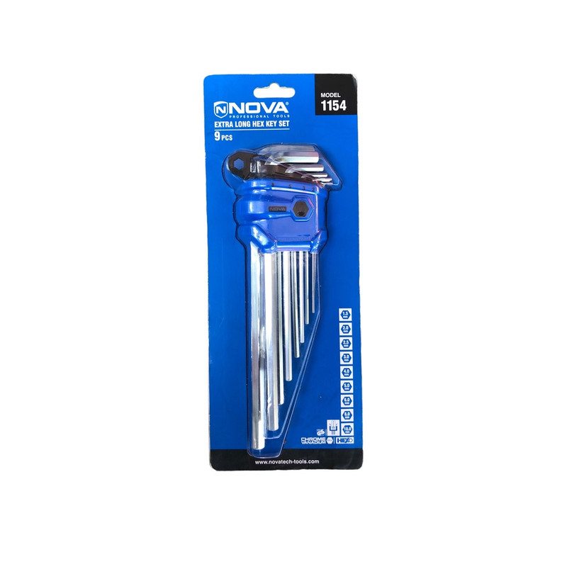 آچار های آلن از مهم ترین ابزار های دستی بشمار می روند که شکل آنها به صورت L می باشند و سطح مقطع آنها با توجه به پیچ های آلن به صورت شش گوش ، ستاره ای و … تولید می شوند.از سری مجموعه های تولید شده توسط نووا ، سایز بلند ست 9 عددی آچار آلن شش گوش نووا تحت آیتم نامبر مدل 1154 است که مطابق با معتبرترین استانداردهای جهانی تولید می شود.