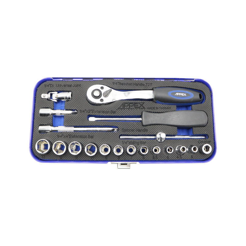 اگر قصد کاملکردن ابزارهای خود را دارید، میتوانید روی محصول فوق حساب کنید. این مجموعه 20عددی و شامل انواع سریهای پیچگوشتی، بکس و آچار اتصال به آنهاست. با دراختیارداشتن این محصول میتوانید بسیاری از پیچ و مهرهها را باز و بسته کنید. شرکت APPEX که یکی از بهترین سازنده های جعبه بکس می باشد این مجموعه درون جعبهای پلاستیکی عرضه شده است. وزن کل این مجموعه 1 کیلوگرم و جابهجایی آن بسیار راحت است. این مجموعهی جمعوجور از کیفیت ساخت عالی برخوردار است.
