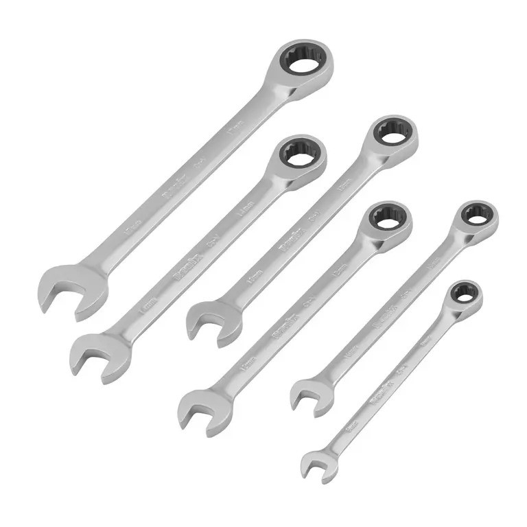 | سایر توضیحات | سایز 8/10/12/13/14/17میلیمتر مکانیزم جغجغه 72دندانه نوع سر آچار Open end /Ratchet جنس دسته 40cr جنس رینگ جغجغه 50bv30 روکش سطح matt بسته بندی کالرباکس |