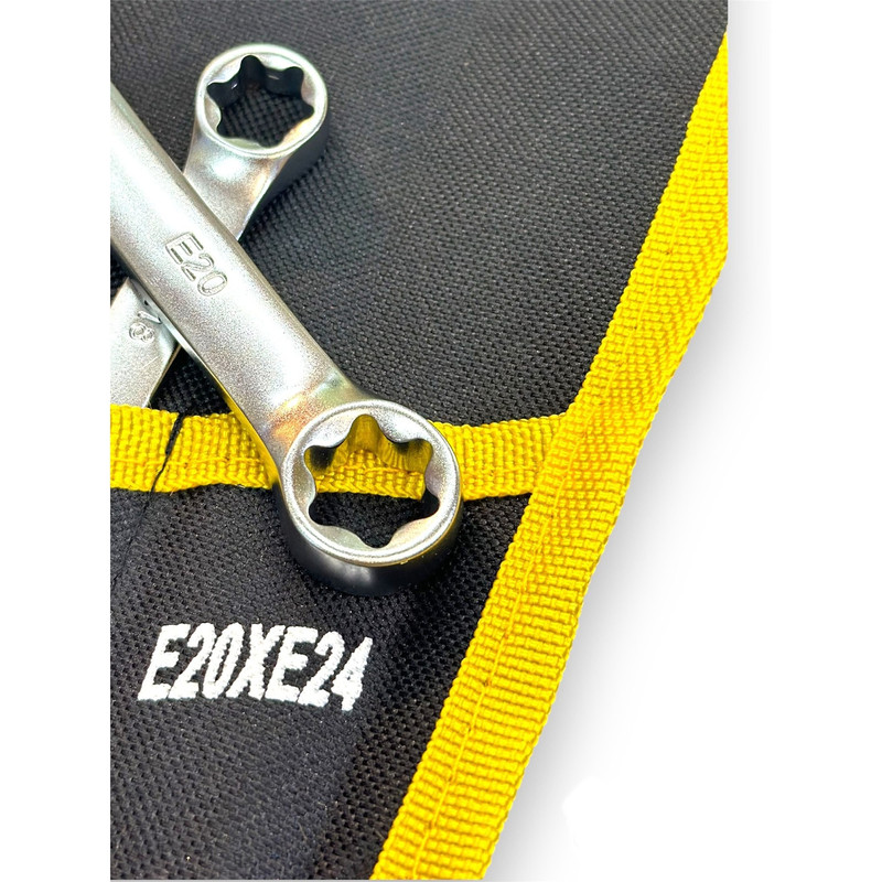 سایر توضیحات - آچار دوسر رینگ ستاره ای E - دارای 4 عدد آچار دوسر رینگ E در سایز های (E6/ E8) - ( E10/E12) - ( E14/ E18 ) - ( E20/ E24 ) - جنس : آلیاژ کروم وانادیوم با مقاومت و کیفیت بالا - دارای کیف برزنتی نظم دهنده با کیفیت دوخت بالا - طراحی منحصر به فرد
