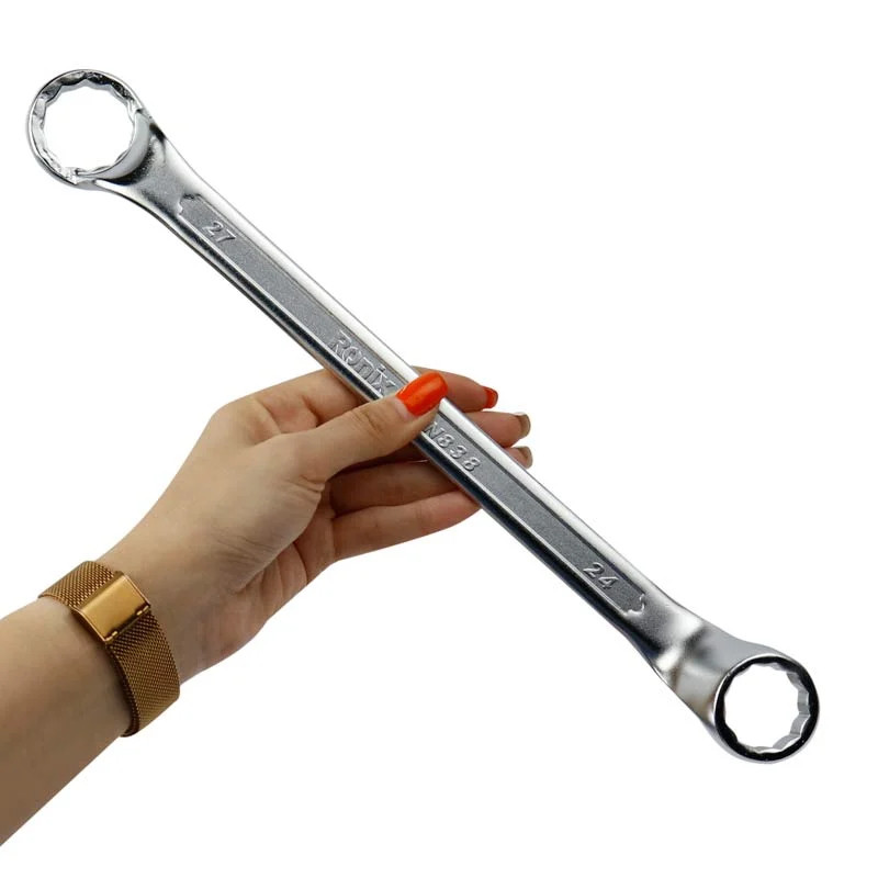 | سایر توضیحات | آچار ۲ سر رینگی با سایز دهانه ۲۴ و ۲۷ میلی متر مناسب برای شل یا سفت کردن انواع پیچ و مهره بدنه ساخته شده از جنس فولاد کروم-وانادیوم با روکش نیکل ضد خط و خش دارای استاندارد DIN 838 |