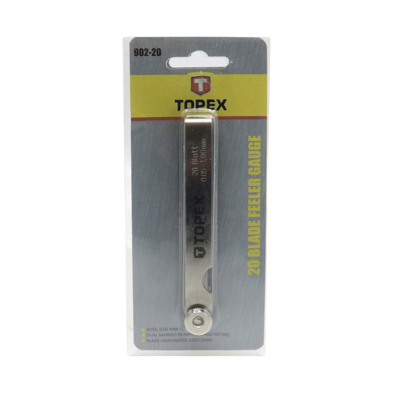 | سایر توضیحات | - اچار فیلر تاپکس مجموعه 20 عددی - فیلر 20 تیغه تیغه فولادی به طول 10 سانتی متر - سایز تیغه ها : 0.05 , 0.10 , 0.15 , 0.20 , 0.25 , 0.30 , 0.35 , 0.40 , 0.45 , 0.50 , 0.55 , 0.60 , 0.65 , 0.70 , 0.75 , 0.80 , 0.85 , 0.90 , 0.95 , 1.00 میلی متر - کیفیت ساخت بالا مناسب جهت تعمیرگاه - کیفین بالا |