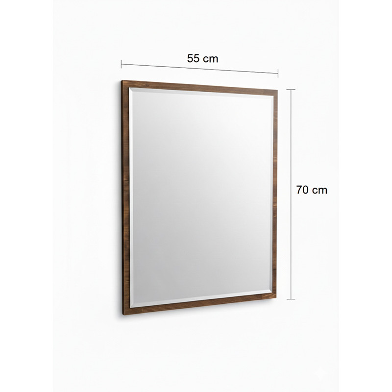 ابعاد آینه ۷۰ سانتیمتر ارتفاع و ۵۵ سانتیمتر عرض بوده و اندازهای مناسب برای نصب در بالای روشویی یا فضاهای محدود دارد.