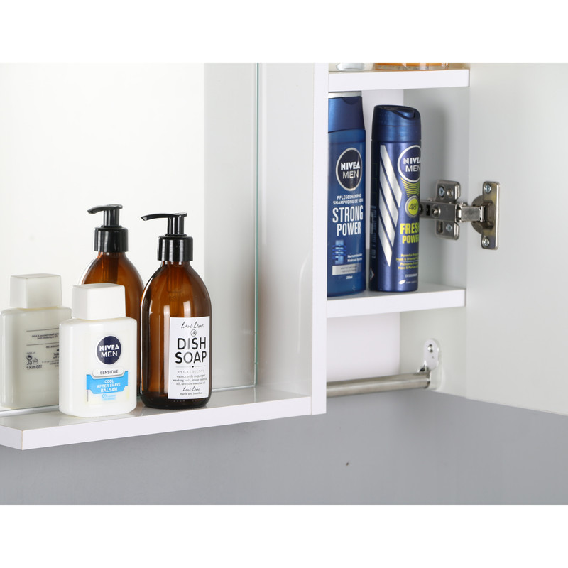 آینه و باکس دلفین کد 1053. این محصول ساخته شده از جنس پی ویسی و ضدآب است. طبقات بیرونی مناسب برای قرار دادن لوازم از جمله ادکلن،لوازم دکوری و آرایشی است. کابینت کنار آینه سایز و فضای مناسب برای استفاده را مهیا نموده است این محصول باید توسط پیچ و رولپلاک به دیوار نصب شود که متعلقات نصب همراه کالا ارسال می شود. آینهی بهکاررفته از نوع درجه یک سوپر کریستال بوده که پشت آینه نقره اندود شده است. تراش یک سانتیمتری دور آینه باعث زیبایی و استحکام بیشتر لبه هاست. لولای کابین از نوع آرام بند بوده و استحکام طبقات برای قرار دادن وزن های متعارف قابلقبول است.