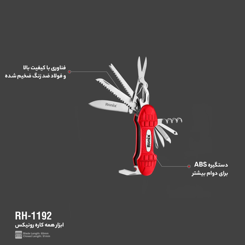 توضیحات تکمیلی مجموعه ابزار | انبر همه کاره 15 در 1 شامل چاقو، قلاب بازکن، ابزار تمیزکاری پوست ماهی، اره، قیچی، کنسرو بازکن، درب بازکن، پیچ گوشتی دو سو، پیچ گوشتی چهارسو، یخ شکن، تیغه تمیزکاری ناخن، سوهان ناخن، سمبه، چوب پنبه بازکن، حلقه کلید |