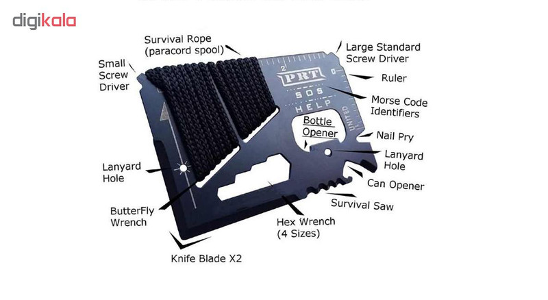 ابزار چند کاره مدل tag18 ابزاری کوچک اما بسیار کاربردی است و همانطور که روی آن چاپ شده می تواند در شرایط بحرانی نجات دهنده طبیعت گردان باشد. این وسیله کوچک به اندازه یک کارت ویزیت طراحی شده و 14 ابزار را در اختیار شما قرار خواهد داد.خط کش، دو اندازه پیچ گوشتی، سه نوع درب بازکن، سوراخ آویز، دو نوع لبه چاقویی و اره ای، آچار مهره چهار لبه و بند آویز از جمله ابزارهای در دسترس در این ابزار است.