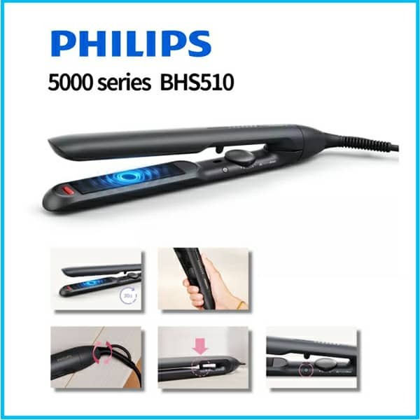 سایر توضیحات | قابل تنظیم 12 لول برای انواع تایپ مو - صفهات سرامیک همراه با ارگان - صفهات شناور - سیم گردان - تکنولوژی جدید فیلیپس ThermaShield Technology شما ب راحتی میتونید روی مو اتو رو نگه دارید و مو را استایل دلخواه بدید بدون انکه مو اسیب ببیند - نوک عایق - کیف |