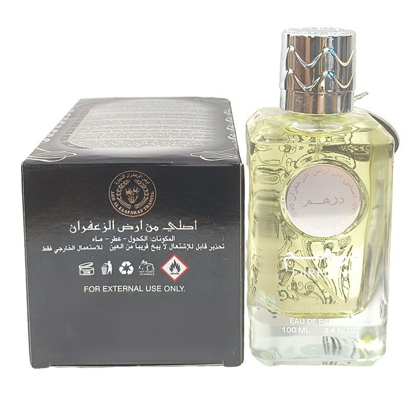 عطر ادکلن درهم نقر‌ه‌ای ارض الزعفران DIRHAM ARD AL ZAFARAAN عطری اسرار آمیز و عارفانه که یکی از بهترین عطرهای برند ارض الزعفران به شمار می‌رود و با رایحه‌ای خنک، تند در سال 2007 به بازار عرضه گردید.