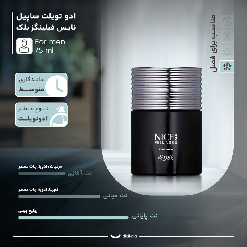 ادو تویلت مردانه ساپیل مدل Nice Feelings Black با حجم 75 میلیلیتر، انتخابی ایدهآل برای مردانی است که به دنبال عطری با رایحه گرم و تند هستند. این عطر با طراحی شیشهای زیبا و مدرن، حس خاصی از جذابیت و شیک بودن را به شما منتقل میکند. نتهای آغازین این ادو تویلت با ترکیبی از مرکبات و ادویهجات معطر آغاز میشوند که طراوت و انرژی را به ارمغان میآورند و فضایی دلپذیر و شاداب را ایجاد میکنند. در نتهای میانی، کهربا و ادویهجات معطر به عطر عمق و جذابیت بیشتری میبخشند و حس گرما و آرامش را منتقل میکنند. در نهایت، نتهای پایانی با روایح چوبی، گرما و ماندگاری را به عطر اضافه میکنند و تجربهای ماندگار و دلپذیر را برای شما رقم میزنند. با پخش بوی متوسط و ماندگاری مناسب، این ادو تویلت برای استفاده روزمره و مهمانیها طراحی شده و به خوبی در فصل زمستان خود را نشان میدهد. با ساپیل Nice Feelings Black، شما میتوانید در هر جمعی بدرخشید و با بوی خاص و دلپذیر خود، جذابیت و شخصیت خود را به نمایش بگذارید. این عطر، بهترین همراه شما در هر لحظه خواهد بود و حس خاصی از شیک بودن و اعتماد به نفس را به زندگی شما میآورد.