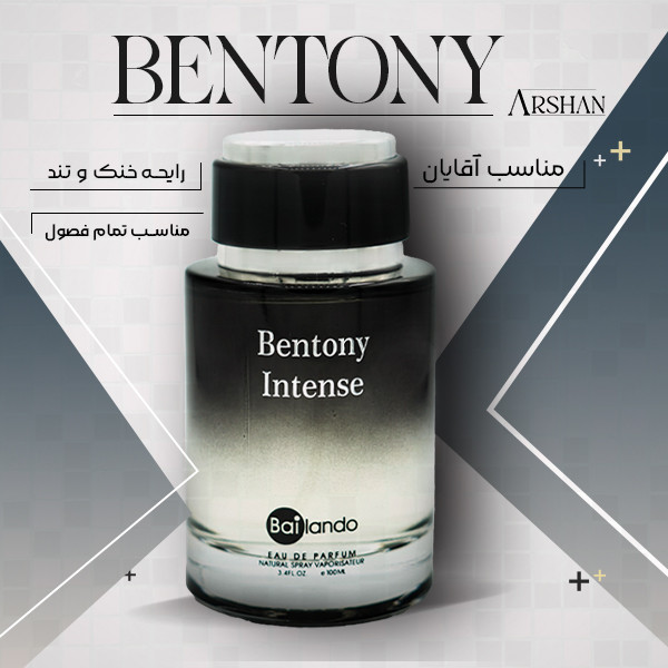 ادوپرفیوم مردانه BENTONY INTENSE دارای ظاهر شیشه ای استوانه ای شکل با رنگ مشکی است که همزمان حس کلاسیک و مدرنیته را برای شما آقایان خوش پوش تداعی میکند . این عطر در