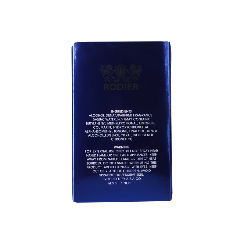 ادکلن مردانه ادوپرفیوم RODIER مدل بوگاتی ، حجم 100 میلی لیتر ، مناسب برای آقایان و فصول گرم ، با رایحه تلخ و خنک و ماندگاری و پراکندگی خوب می باشد.این ادکلن از برند خود رودیر می باشد.