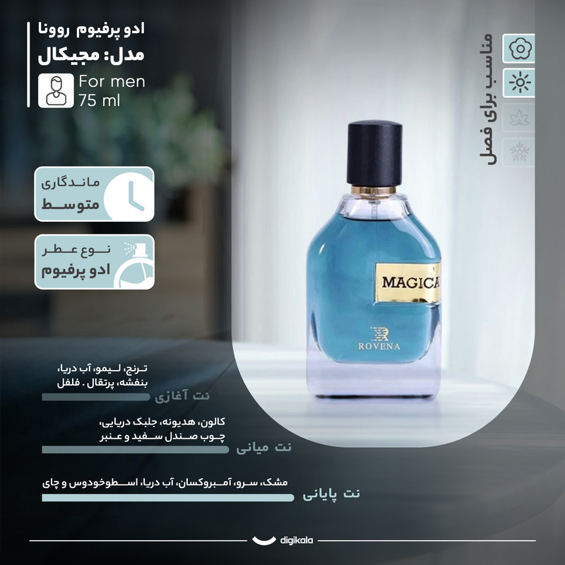 مناسب برای فصول گرم: ایدهآل برای استفاده در تابستان و بهار، زمانی که به دنبال عطری خنک و شاداب هستید.