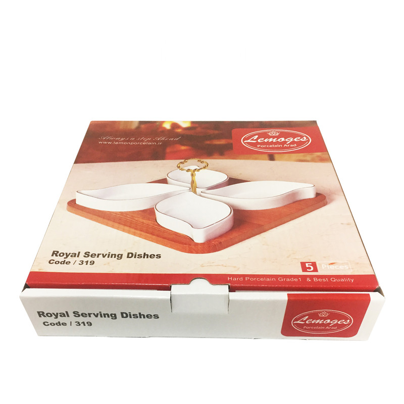 شرکت لیمونژ چینی آراد تولید کننده انواع ظروف آشپزخانه چینی در سال 93 با تفکر ایجاد تحول و تاثیر گذاری در کیفیت و تنوع انواع ظروف چینی شروع به فعالیت کرد. این شرکت با دیدگاه توسعه پایدار و شعار (همیشه یک گام جلوتر) در سال 97 موفق به راه اندازی واحدهای توسعه ، تحقیق ، طراحی و قالب سازی گردید که در این راستا موفق به طراحی ، ثبت طرح های صنعتی ، ساخت و تولید انواع ظروف آشپزخانه چینی سخت شده است. محصول اردوخوری چهارخانه رویال مدل 319 از جنس چینی با کیفیت و لبه های طلایی با پایه چوبی و دسته طلایی رنگ می باشد.