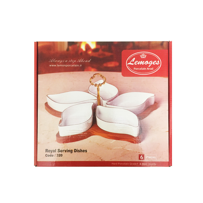 شرکت لیمونژ چینی آراد تولید کننده انواع ظروف آشپزخانه چینی در سال 93 با تفکر ایجاد تحول و تاثیر گذاری در کیفیت و تنوع انواع ظروف چینی شروع به فعالیت کرد. این شرکت با دیدگاه توسعه پایدار و شعار (همیشه یک گام جلوتر) در سال 97 موفق به راه اندازی واحدهای توسعه ، تحقیق ، طراحی و قالب سازی گردید که در این راستا موفق به طراحی ، ثبت طرح های صنعتی ، ساخت و تولید انواع ظروف آشپزخانه چینی سخت شده است. محصول اردوخوری لمونژ مدل پنج خانه رویال کد 320 از جنس چینی با کیفیت و لبه های طلایی با پایه چوبی و دسته طلایی رنگ می باشد.