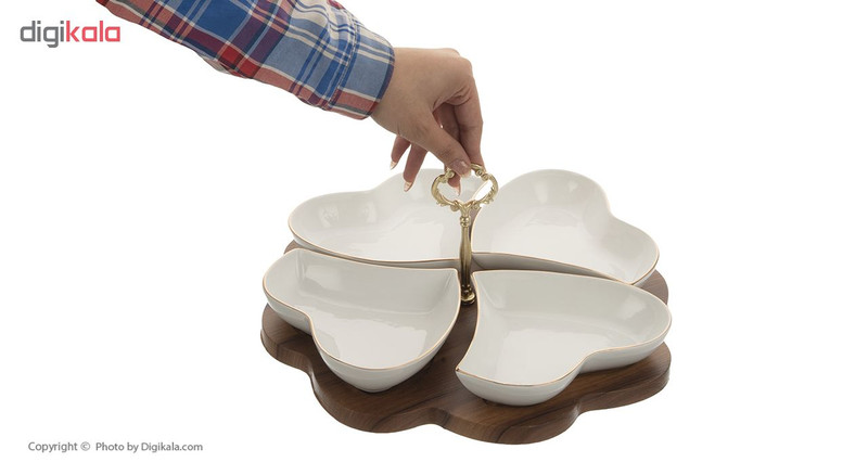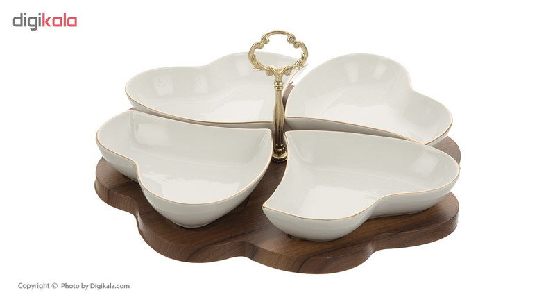 | سایر توضیحات | - دارای زیره چوبی و دسته فلزی - دارای 4 محفظه جداگانه - ابعاد هر ظرف: 18 × 15.5 × 3.5 سانتیمتر |