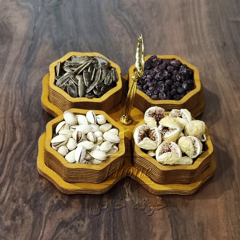 اردور خوری چوبی خونه خاص از جنس چوب پلای وود روس درجه یک ساخته شده است و ضد آب می باشد همچنین در تولید محصول از رنگ خوراکی استفاده شده لذا با خیال راحت می توانید انواع آجیل و خوراکی را داخل آن بریزید و استفاده کنید
