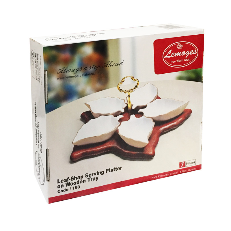 شرکت لیمونژ چینی آراد تولید کننده انواع ظروف آشپزخانه چینی در سال 93 با تفکر ایجاد تحول و تاثیر گذاری در کیفیت و تنوع انواع ظروف چینی شروع به فعالیت کرد. این شرکت با دیدگاه توسعه پایدار و شعار (همیشه یک گام جلوتر) در سال 97 موفق به راه اندازی واحدهای توسعه ، تحقیق ، طراحی و قالب سازی گردید که در این راستا موفق به طراحی ، ثبت طرح های صنعتی ، ساخت و تولید انواع ظروف آشپزخانه چینی سخت شده است. محصول اردوخوری لمونژ مدل پنج خانه برگ کد 150 از جنس چینی با کیفیت و لبه های طلایی با پایه چوبی و دسته نقره ای رنگ می باشد.