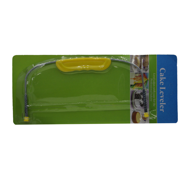 این اره برش کیک با سیم برشی از استیل فنر آلمانی ساخته شده که به هیچ عنوان پاره نمیشود این اره دارای پایه بوده و ارتفاع برش قابل تنظیم دارد . دسته رو به بالای اره برش کیک باعث میشود که هنگام کار دست به سطح کیک برخورد نداشته و هم موقع کار دست و پاگیر نباشد. روش استفاده : ابتدا کیک را بر روی سطحی صاف و غیر لغزنده قرار دهید سپس با توجه به ضخامت لایه ای که میخواهید برش دهید، ارتفاع تیغه اره را تنظیم نمایید. سپس با قرار دادن پایه های اره بر روی میز کار، پایه های اره را گرفته وبا حرکت تدریجی اره ای ، کیک را برش دهید. به عبارتی دیگر ، وقتی اره با سطح کیک تماس یافت، یا حرکت تدریجی تیغه اره در لایه کیک به سمت جلو حرکت کرده و در حین برش دادن از سمت دیگر کیک خارج می شود.