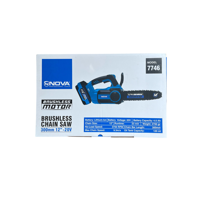 اره زنجیری شارژی مدل 7746 یکی از پرفروش‌ترین محصولات برند NOVA با کیفیت ساخت بالا و دارای استاندارد CE اروپا است. این اره شارژی مناسب برای باغبانی، برش تنه درخت، برش چوب و امور نجاری خانگی و حرفه‌ای طراحی شده است. با بهره‌گیری از موتور براشلس (بدون زغال)، عملکردی پر قدرت، کم‌ صدا و با دوام بالا ارائه می‌دهد. طراحی خوش‌ دست و ارگونومیک، همراه با وزن سبک و بدنه مقاوم، این مدل را به گزینه‌ای ایده‌آل برای کاربران خانگی و حرفه‌ای تبدیل کرده است.