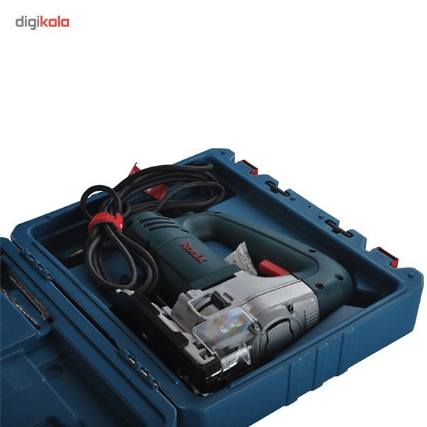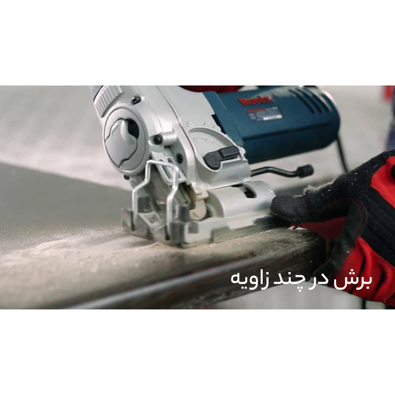 سایر توضیحات - قابلیت مکش گرد و غبار حاصل از برش - دارای دیمر جهت تنظیم ولتاژ و سرعت برش - گیربکس و موتور قوی و صلب - قابلیت تنظیم سرعت در شش حالت بر اساس سختی نوع چوب تحت برش - دارای کلید چهار زمانه جهت حرکت پاندولی تیغه - تنظیم سریع نقاله برای برش‌های زاویه‌ای - قابلیت برش زاویه تا 45 درجه از دو طرف چپ و راست - طراحی ارگونومیکی دسته برای استفاده آسان - تعویض تیغه بدون نیاز به ابزار