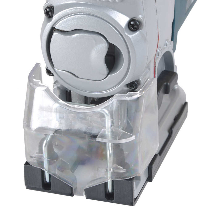 سایر توضیحات- قابلیت مکش گرد و غبار حاصل از برش - دارای دیمر جهت تنظیم ولتاژ و سرعت برش - گیربکس و موتور قوی و صلب - قابلیت تنظیم سرعت در شش حالت بر اساس سختی نوع چوب تحت برش - دارای کلید چهار زمانه جهت حرکت پاندولی تیغه - تنظیم سریع نقاله برای برش‌های زاویه‌ای - قابلیت برش زاویه تا 45 درجه از دو طرف چپ و راست - طراحی ارگونومیکی دسته برای استفاده آسان - تعویض تیغه بدون نیاز به ابزار