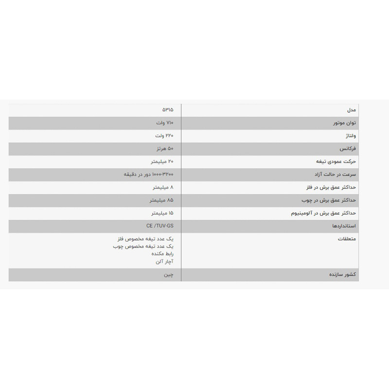 | ویژگیهای اره | برش چکشی , برش رفت و برگشتی (افقی) , قابلیت برش با زاویه |