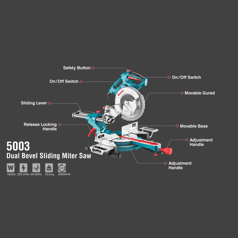 سایر توضیحات- ابعاد برش در زاویه صفر بر 90 درجه 310x89 میلی‌متر - ابعاد برش در زاویه 45 بر 90 درجه 218x89 میلی‌متر - ابعاد برش در زاویه صفر بر 45 درجه 310x48 میلی‌متر - ابعاد برش در زاویه 45 بر 45 درجه 218x48 میلی‌متر -ساخته شده از مواد اولیه با کیفیت به منظور دستیابی به حداکثر کارایی و دقت در برش. -طراحی سبک وجمع و جور برای سهولت در جابجایی. -دارای صفحه عریض شونده جهت برش های متوالی. -دستهD شکل برای استفاده آسان کاربر در حین عملیات برشی. - مجهز به سیستم قفل کن پیشرفته و سریع میز برش در 9 زاویه کاربردی جهت انجام برش های بازویی. -دارای سیستم جمع آوری گرد و غبار. -دارای گیره نگهدارنده قطعه کار. -مجهز به مکانیزم قفل شفت برای تعویض سریع و آسان صفحه برشی. -استفاده از سوییچ ضد غبار به منظور افزایش طول عمر. -قابلیت انجام برش زاویه دار از دو موضع کفی و بازویی. - مجهز به گونیای مدرج وگونیای متحرک. - دارای تیغ اره الماسه TCG مخصوص برش MDF -مجهز به ریل های کشویی برای افزایش ظرفیت برشکاری- -مجهز به گارد محافظ تیغه برای افزایش ایمنی کاربر
