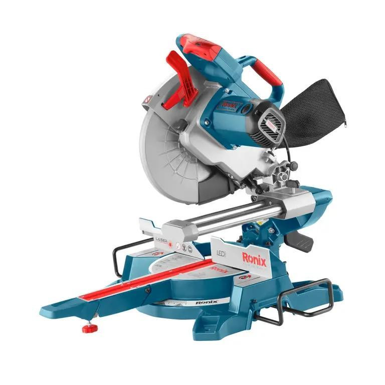 سایر توضیحات | اره فارسی بر کشویی Ronix ساخت کشور چین تولید از مواد اولیه با کیفیت جهت بالا بردن دقت و موتور قوی با توان 2000 وات قابلیت تنظیم زاویه برای افزایش دقت در برش های مورب سرعت 4800 دور بر دقیقه با ترمز الکتریکی به منظور ایمنی بیشتر کاربر صفحه عریض شونده برای برش های متوالی و سیستم قفل کن پیشرفته و سریع سیستم جمع آوری ذرات و سوئیچ ضد گرد و غبار جهت افزایش طول عمر میز با 9 زاویه کاربردی و لیزر نشان دهنده خط برای انجام برش در شرایط مختلف دسته D شکل کمکی برای سهولت در کار و طراحی سبک برای حمل آسان مجهز به مکانیزم قفل شفت برای تعویض آسان صفحه |