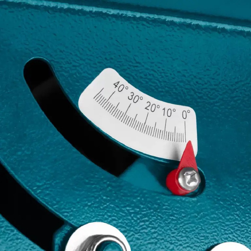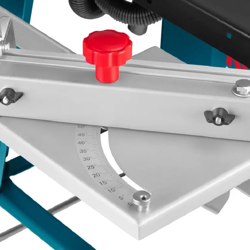 -تیغه به قطر بیرونی 315 میلیمتر، قطر سوراخ داخلی 30 میلیمتر و ضخامت سگمنت 3 میلیمتر ساخته شده است. ظرفیت برش برابر با 83 میلیمتر در زاویه صفر درجه و 50 میلیمتر در زاویه 45 درجه بوده و تیغه برای محافظت در حین جابهجایی میتواند به سمت داخل و زیر میز کار حرکت کند.
