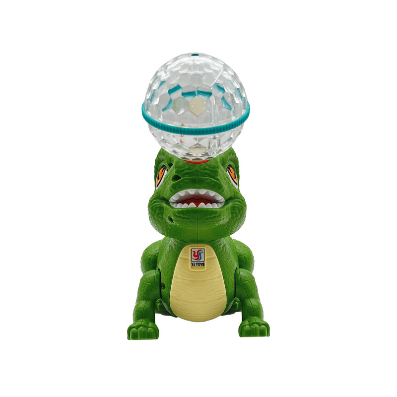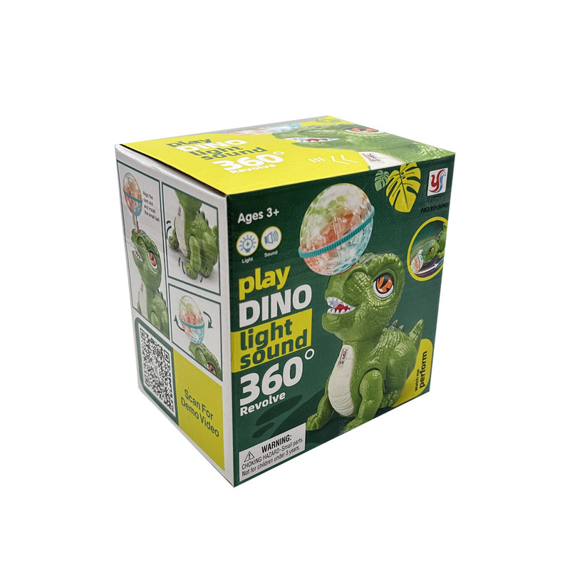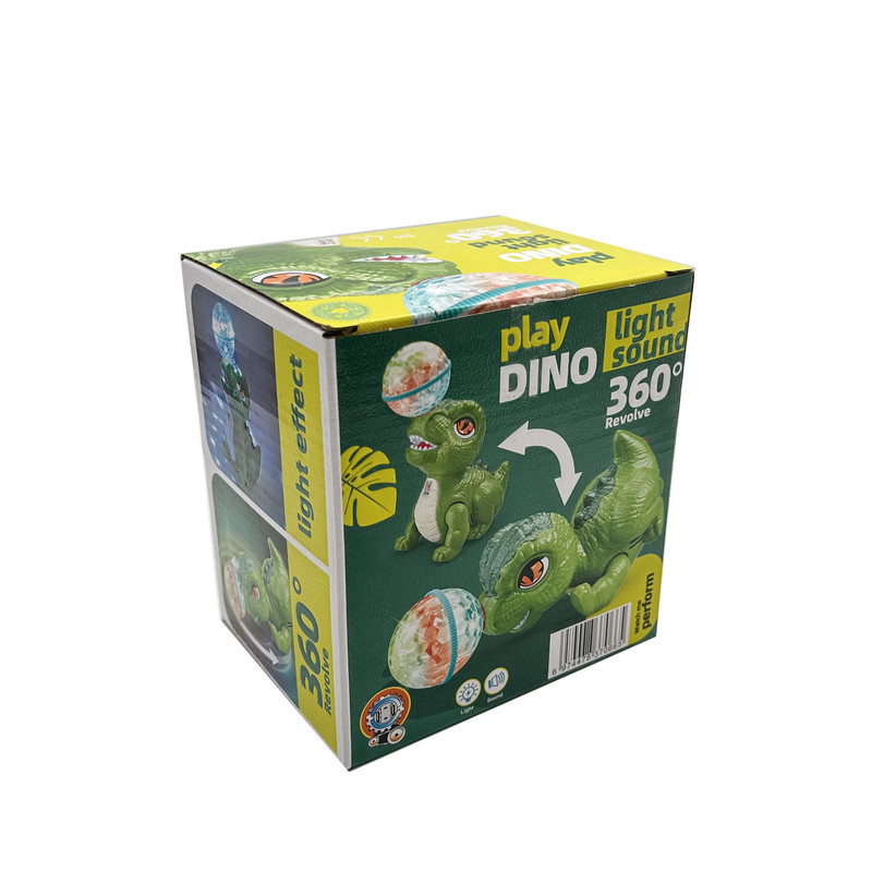 اسباب بازی دایناسور چرخشی که با 3 عدد باطری قلمی کار می کند، دارای دکمه روشن و خاموش می باشد، این دایناسور حرکتی با برخورد به موانع تغییر مسیر داده و به جرکت خود ادامه می دهد. همچنین دایناسور موزیکال چراغ دار، بر روی توپ روی سر خود به طور 360 درجه می چرخد.