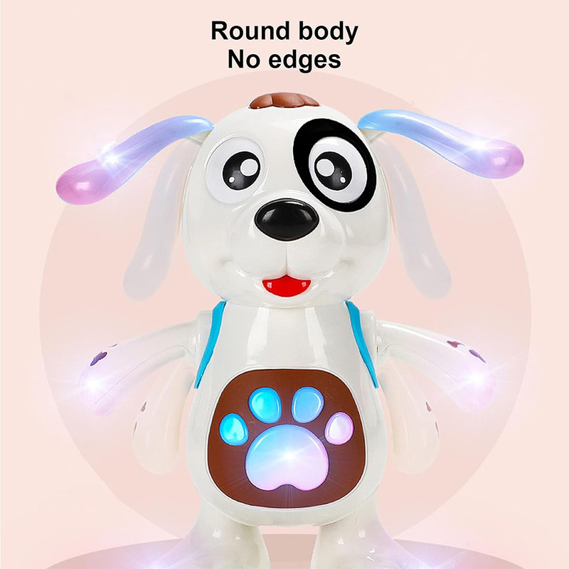 اسباب بازی سگ رقاص دارای قابلیت راه رفتن رقصیدن و 4نوع حالت موزیکال، همراه چراغ های جذاب در گوش ها و دستان بدن خود می‌باشد که فضایی شاد رو برای کودک به ارمغان میاورد. سگ رقاص در دسته اسباب بازی های سرگرمی جنبشی و آموزشی قرار دارد و به فرزند شما در راه رفتن یا در چهار دست پا رفتن کمک میکند. متریال ABS ( آنتی باکتریال و ضد حساسیت مناسب برای کودکان )
