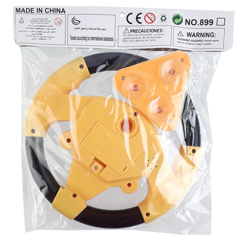 این اسباب بازی یک فرمان ماشین موزیکال اسباب بازی میباشد. دارای 8 دکمه روی فرمان که صدای بوق و یا روشن شدن ماشین یا آژیر و غیره پخش میکنند. پشت فرمان سه بادکش است که میتوان آن را بر روی سطوح صاف چسباند. ابعاد فرمان: ارتفاع 20 پهنا 20 عرض 6 سانت و وزن 163 گرم است. قسمت بادکش دار جداگانه است که باید روی فرمان نصب شود. کیفت ساخت بدنه عالی است و بسیار مقاوم میباشد. با دو باتری قلمی کار میکند.