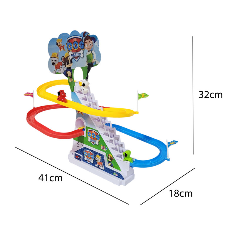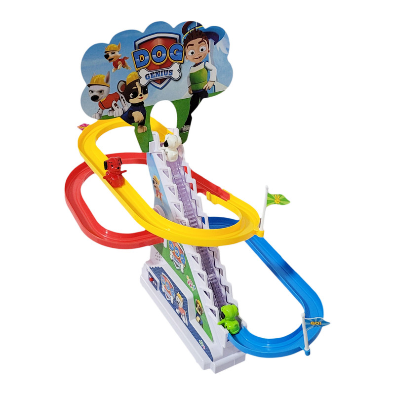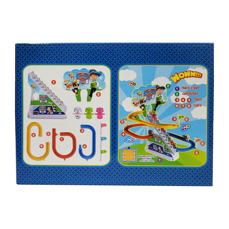 | سایر توضیحات | موزیکال دارای چراغ قابلیت بالا رفتن سگ ها از پله و سپس پایین امدن از سرسره ( به صورت خودکار ) ساخته شده از پلاستیک نیاز به 3 عدد باتری قلمی (فاقد باتری ) دارای 3 عدد سگ |