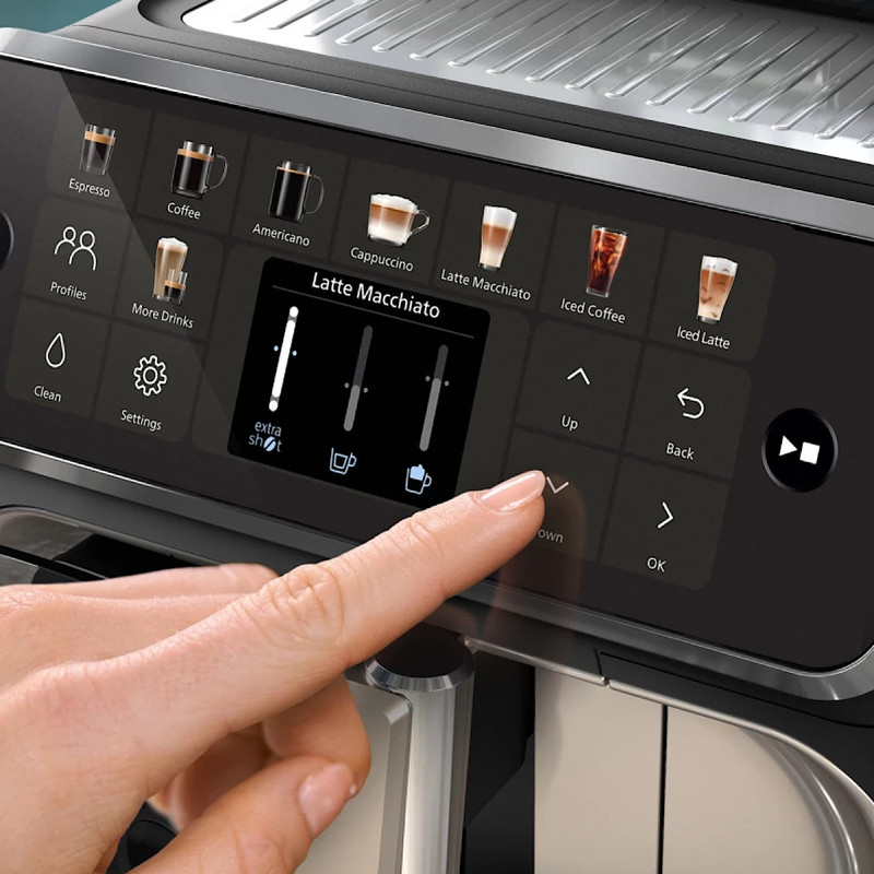سایر توضیحات | قابلیت تنظیم آسیاب در 12 حالت / تنظیمات قدرت عطر و غلظت قهوه در 5 سطح متفاوت / تنظیم دما در سه سطح / قابلیت تنظیم و شخصی سازی برای 5 نفر / فیلتر AquaClean / قابلیت تهیه فوم شیر با فناوری LatteGo / قابلیت سفارشی سازی و ذخیره نوشیدنی / فناوری SilentBrew برای کاهش صدای دستگاه / قابلیت QuickStart |
