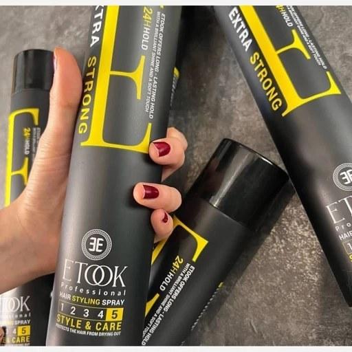 توضیحات اسپری حالت دهندۀ موی ایتوک اسپری حالت دهندۀ موی ایتوک مدل Extra Strong حجم 500 میلی لیتر با فرمولاسیون جدید و تاثیرگذاری طولانی مدت، موهای شما را تا 24 ساعت در حالت دلخواه نگه می‌دارد. این محصول با استفاده از مواد اولیۀ ویژه باعث شفافیت، درخشندگی و نرمی موها می‌شود. این اسپری موی 500 میلی لیتری از برند ایتوک، دارای مجوز از سازمان غذا و دارو است اما شما باید قبل از استفاده حتما مقداری روی پوست خود بزنید و آزمایش حساسیت را انجام دهید