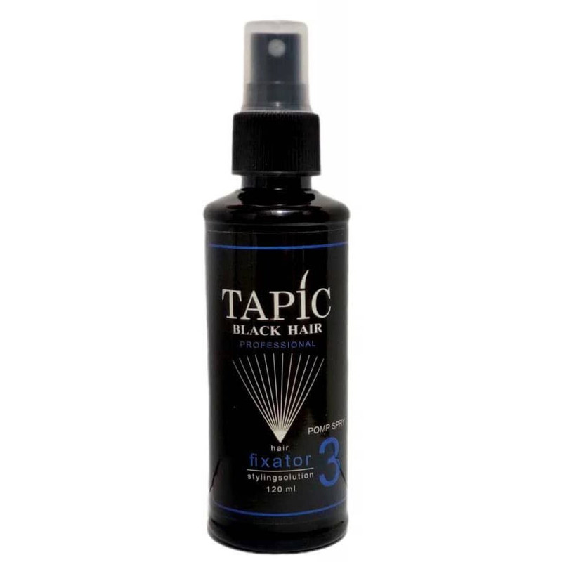 اسپری فیکساتور تاپیک با قدرت نگهدارندگی بسیار بالا این امر را تسهیل نموده و مدل مو را به مدت طولانی در فرم دلخواه نگه می‌دارد و جلوه‌ای طبیعی و زیبا از حالت مو بوجود می‌آورد. این محصول در برابر رطوبت مقاومت نشان داده و حالت خود را از دست نمی‌دهد. حجم این محصول 120 میلی لیتر است. علاوه بر این موارد، استفاده از این محصول به افرادی که از پودر پرپشت کننده تاپیک استفاده می‌نمایند توصیه می‌شود، چرا که این محصول به علت چسبندگی فوق‌العاده بالا مانع از بین رفتن پودر استفاده شده در سر هنگام باد، باران و تعرق می‌گردد و باعث فیکس شدن هرچه بهتر پودر روی سر می‌شود.