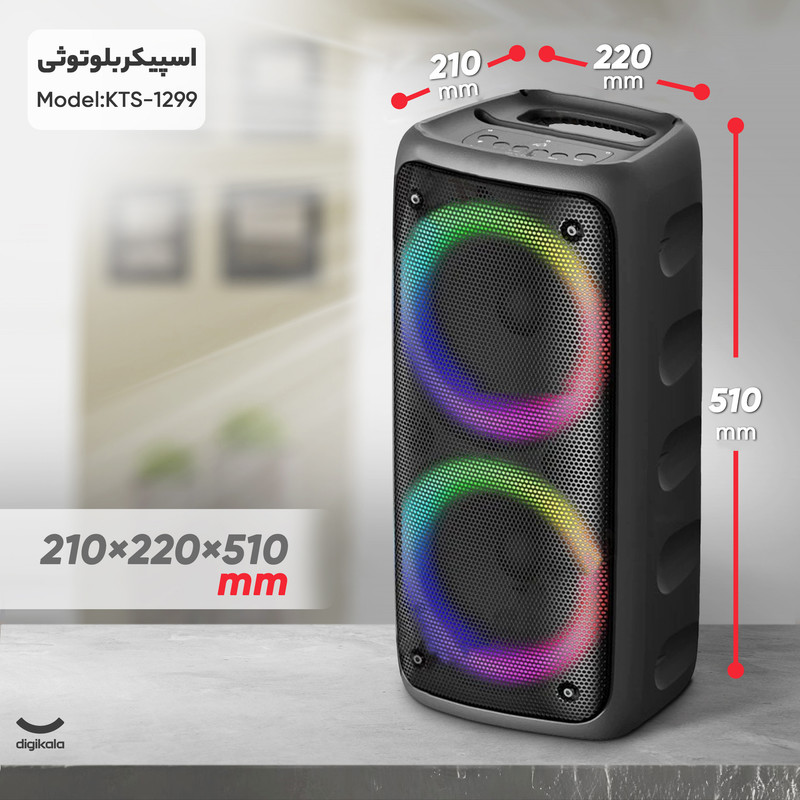 اسپیکر بلوتوثی قابل حمل ای ال وی مدل KTS-1299 یک انتخاب عالی برای کسانی است که به دنبال صدای باکیفیت و امکانات متنوع در یک محصول هستند. با ابعاد ۵۱۰x۲۱۰x۲۲۰ میلیمتر و وزن ۲۸۷۰ گرم، این اسپیکر به راحتی قابل حمل بوده و میتوانید آن را به مکانهای مختلف ببرید، از مهمانیها تا سفرها.