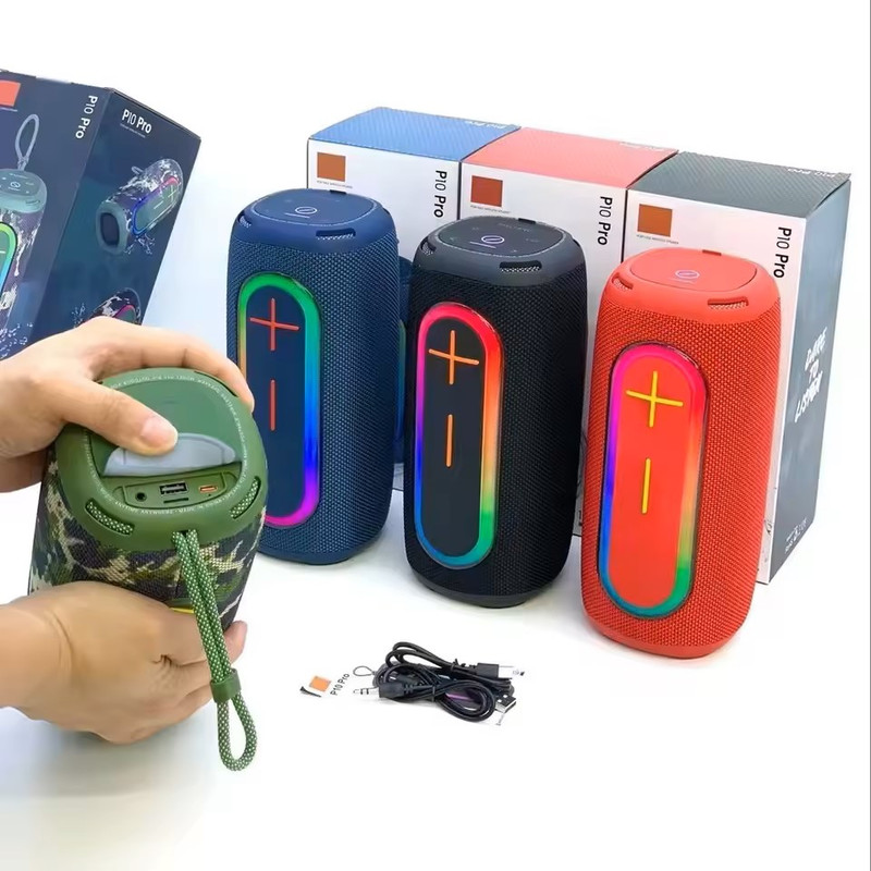 اسپیکر بلوتوثی قابل حمل P 10-Pro با استفاده از کابل Type-C همراه پکیج شارژ می شود. با هر مرتبه شارژ کامل می توانید 12 ساعت از آن استفاده کنید. هر بار شارژ کامل 2 ساعت طول می کشد. توان اسپیکر 20 وات است. این اسپیکر دارای چراغ LED است که باعث زیبایی بیشتر آن شده است. همچنین بلوتوث این اسپیکر تا شعاع حدود 10 متری را پشتیبانی می نماید. این اسپیکر دارای پورت AUX و محل مخصوص رم است که با یک محفظه سیلیکونی پوشانده شده اند تا رطوبت و غبار وارد آن نشود. همچنین یک دکمه برای کنترل نور تعبیه شده است. با استفاده از دفترچه راهنما می توانید عملکرد اسپیکر را کاملا متوجه شوید.