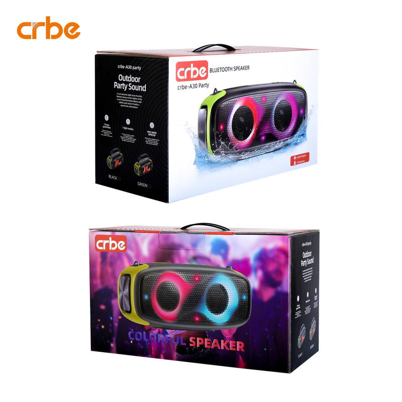 اسپیکر بلوتوثی قابل حمل کربی مدل CRBE - A30 PARTY محصول جدید و پرچم دار کمپانی کربی ست که به تازگی از آن رونمایی شده است . این اسپیکر پرچم دار از توان خروجی 70 وات برخوردار است که در نوع خود بی نظیر است . این اسپیکر از طریق بلوتوث نسخه 5.0 میتواند با دیوایس پخش کننده موسیقی متصل گردد . اسپیکر بلوتوثی قابل حمل کربی مدل CRBE - A30 PARTY همچنین در کنار بلوتوث از کارت حافظه TF ، جک 3.5 میلیمتری صدا و پورت USB نیز پشتیبانی میکند . اتصال بلوتوث این اسپیکر تا شعاع 10 متری میتواند به دستگاه پخش کننده موسیقی متصل بماند . اسپیکر بلوتوثی قابل حمل کربی مدل CRBE - A30 PARTY از چهار قطعه از جمله دو بلندگو و دو عدد ساب ووفر تشکیل شده است . به همراه اسپیکر بلوتوثی قابل حمل کربی مدل CRBE - A30 PARTY یک پک شامل کابل شارژ TYPE-C ، کابل AUX ، بند آویز دوشی و دفترچه راهنما ارائه میگردد . باتری این اسپیکر از ظرفیت 8800 میلی آمپری برخوردار است که به راحتی بین شش تا هشت ساعت میتواند به پخش موسیقی بپردازد . اسپیکر بلوتوثی قابل حمل کربی مدل CRBE - A30 PARTY در دو رنگ مشکی و سبز مات عرضه میشود . اسپیکر بلوتوثی قابل حمل کربی مدل CRBE - A30 PARTY به شکل کامل در برابر آب مقاوم است و از گواهی IPX5 برخوردار است . رقص نور در اطراف بلندگو زیبایی خاصی به اسپیکر میدهد که قابل تغییر و خاموش کردن نیز هست . همچنین این اسپیکر قابلیت اتصال همزمان به دو اسپیکر را نیز داراست .
