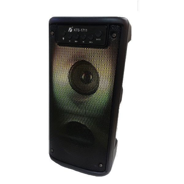 اسپیکر بلوتوثی قابل حمل KTS-1711 معرفی شده در سال 2023 از سوی کمپانی BIG SOUND مدل بهینه و به روز شده اسپیکر پر فروش و پر طرفدار KTS-1296 از همین برند می باشد که با توان خروجی 10 وات و ظاهر شیک و جدید و زیبا یکی از بهترین گزینه ها برای لذت بردن از موزیک می باشد. این اسپیکر دارای دو باند 3 اینچی و دارای رقص نور بهینه و جدید و حالت اکولایرز می باشد که هنگام پخش موزیک زیبایی دو چندانی به اسپیکر میدهد. پشتیبانی از کارت حافظه و فلش مموری ، بلوتوث ، ورودی AUX و قابلیت اتصال میکروفن از ویژگی های این اسپیکر قدرتمند می باشد . و قابلیت TWS نیز به شما این امکان را می دهد که با خرید دو دستگاه از این مدل آنها را جفت سازی کرده و همزمان از دو اسپیکر از طریق بلوتوث بخش صدای استریو را دریافت کنید . با این امکان به راحتی می توان یک مهمانی و و یا یک جشن تولد را پوشش داد