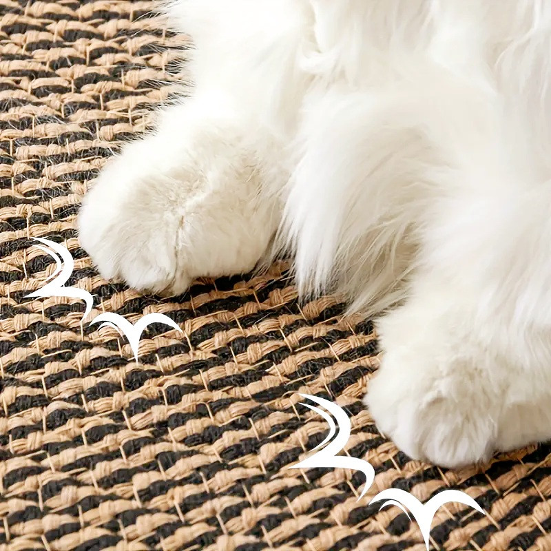 این کالا از ریسمان پنبه ای قیطان دوخته شده است. دوختی تمیز و محکم دارد. از این محصول میتوان بعنوان زیرانداز گربه و یا اسکرچر استفاده نمود. تمیز کردن این کالا بسیار راحت است، میتوان آن را جارو کشید و یا در ماشین لباسشویی شست.