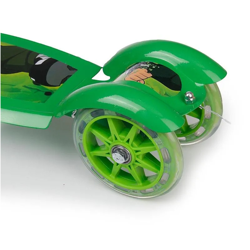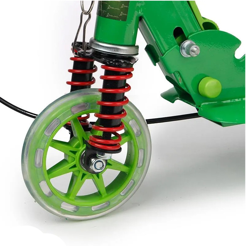 قطر چرخ ها 120 میلی متر و پلاستیکی می باشد. به علاوه این اسکوتر دارای کمک فنر است که باعث می شود تا ضربات ناشی از دست اندازها، کمتر انتقال پیدا کند. همچنین مجهز به 2 ترمز، یک ترمز دستی و یک ترمز پدالی در چرخ عقب می باشد که ایمنی استفاده از این اسکوتر را دو چندان می کند. دارای قابلیت تنظیم فرمان است که در 3 حالت ارتفاع مختلف تنظیم می شود تا برای کودکان و نوجوانانی که در سنین رشد هستند، قابل استفاده باشد.