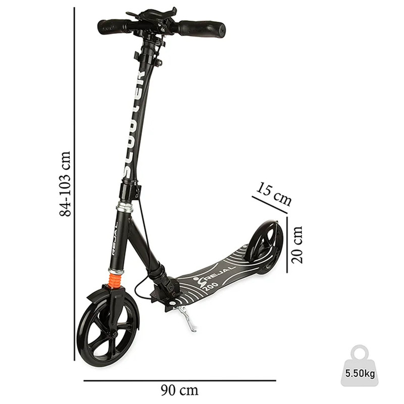 | سایر توضیحات | مجهز به جک نگهدارنده- تحمل وزن تا 90 کیلوگرم- قطر چرخها 200 میلیمتر- فاصله بین دو چرخ حدود 73 سانتیمتر- ابعاد کلی حدود 90×80×15 سانتیمتر- جنس دستهها از پلاستیک فشرده ضد لغزش- جنس بدنه فلزی، مقاوم در برابر ضربه و فشار- دارای طراحی ساده و مدرن با رنگآمیزی مقاوم- مجهز به ترمز پایی، روی چرخ عقب و ترمز سیمی- جنس چرخها ژلهای (پلییورتان) با عملکرد نرم و روان- مجهز به مکانیزم تاشو با اهرم قفل سریع در پایین فرمان- قابل حمل آسان، قابل جایگیری در صندوق خودرو یا کمد- مناسب برای استفاده روزمره، تفریحی یا مسیرهای کوتاه در محیط شهری- دارای فرمان با قابلیت تنظیم در 3 ارتفاع مختلف بین 103 – 84 سانتی متر- دارای سطح ایستادن (deck) پهن و ضد لغزش، مناسب برای حفظ تعادل بهتر- |