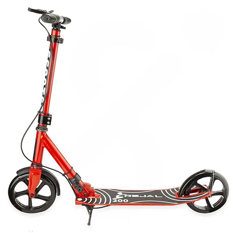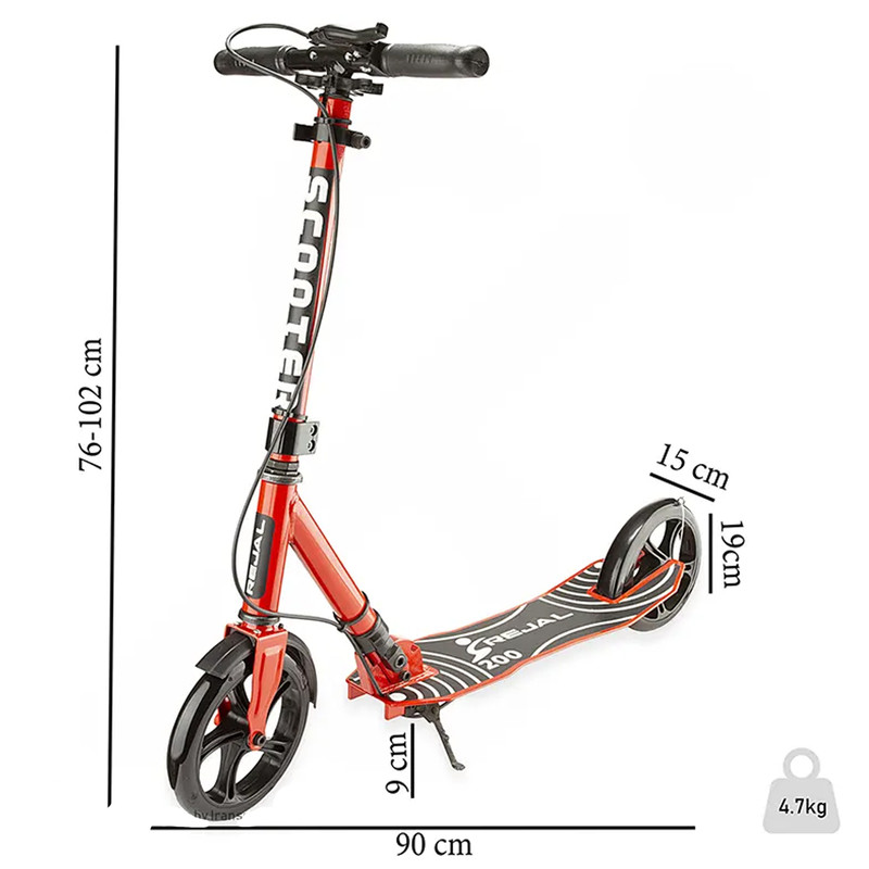 اسکوترها فقط یک اسباب بازی سرگرم کننده در فضای باز نیستند، بلکه می توانند فعالیت بدنی، هماهنگی و اعتماد به نفس بالایی را برای افراد به ارمغان بیاورند. اسکوتر رجال مدل R-200Tمناسب برای جوانان و نوجونان می باشد و با طراحی منحصر به فرد و جذاب خود، نظر هر بیننده ای را به خود جلب می کند. بدنه ی فلزی این اسکوتر باعث دوام و مقاومت بالای آن در برابر ضربه شده است. این محصول دارای دستگیره های ارگونومیک با روکش پلاستیکی می باشد که راحتی بیشتری را در حین گشت و گذار برای شما فراهم می کند. فرمان اسکوتر رجال، قابلیت تنظیم در سه ارتفاع مختلف مطابق با قد کاربر را دارد که امکان استفاده از آن را برای اشخاص مختلف فراهم می کند. در زیر فرمان دو عدد گیره به منظور آویزان کردن و حمل وسایل تعبیه شده است. چرخ ها از نوع ژله ای با قطر 200 میلی متر می باشند که با ایجاد یک سواری نرم و ایمن، لذت استفاده از این اسکوتر را حتی در زمین های ناهموار هم چند برابر می کنند. به منظور جلوگیری از لغزش فرد و ایجاد تعادل، کفی اسکوتر به یک برچسب ضد لغزش مجهز شده است. در طراحی این محصول از دو نوع ترمز پدالی و سیمی استفاده شده که توقف سریع و ایمنی را به وجود می آورند. جک فنر دار این اسکوتر، پارک کردن آن را راحت کرده و از افتادن و آسیب رسیدن به اسکوتر جلوگیری می کند. اسکوتر جوانان رجال مدل R-200T ، دارای یک مکانیسم تاشو برای حمل و نقل راحت است. طول این اسکوتر 90 و ارتفاع آن 76-102 سانتیمتر و وزن آن 4.7 کیلوگرم می باشد.